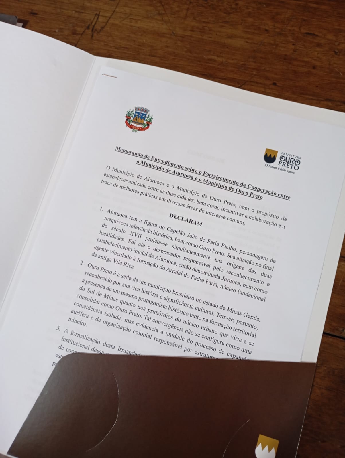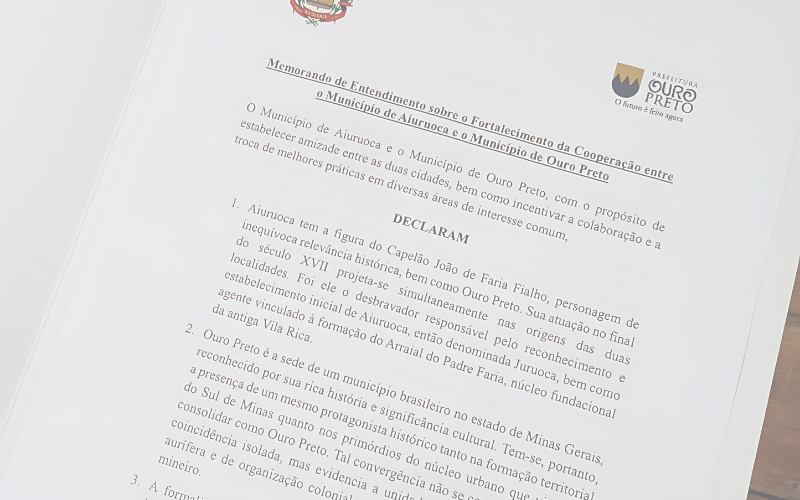 Em uma cerimônia marcada por simbolismo, história e visão de futuro, foi assinado, ontem (18/03), o protocolo de intenções que dá início ao processo de reconhecimento de Ouro Preto e Aiuruoca como cidades-irmãs. O ato ocorreu na Casa de Tomaz Antônio Gonzaga, em Ouro Preto, reunindo autoridades e representantes institucionais.