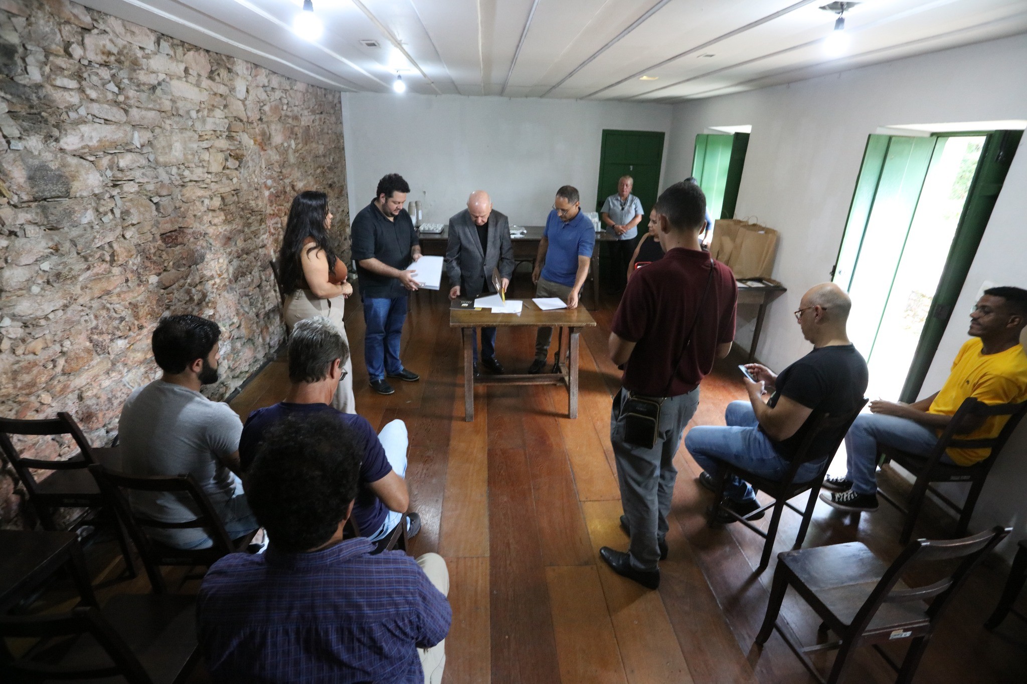 Na sequência, foi realizada uma visita técnica à Capela do Padre Faria, atualmente em processo de restauração. O espaço é um importante símbolo da história local e da trajetória do Padre João de Faria Fialho, figura que conecta os dois municípios.